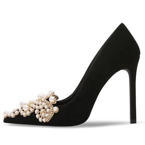 結婚式 パンプス ヒールパンプス ポインテッドトゥ パール ビジュー 黒 結婚式用 パーティ 二次会 大きいサイズ エレガント 結婚式 パンプス ヒールパンプス ポインテッドトゥ パール ビジュー 黒