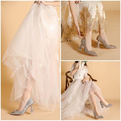 結婚式 パンプス ヒールパンプス ビジュー ラメ クリア クリスタル ヒール ポインテッドトゥ パーティ 二次会 大きいサイズ 結婚式 パンプス ヒールパンプス ビジュー ラメ クリア クリスタル