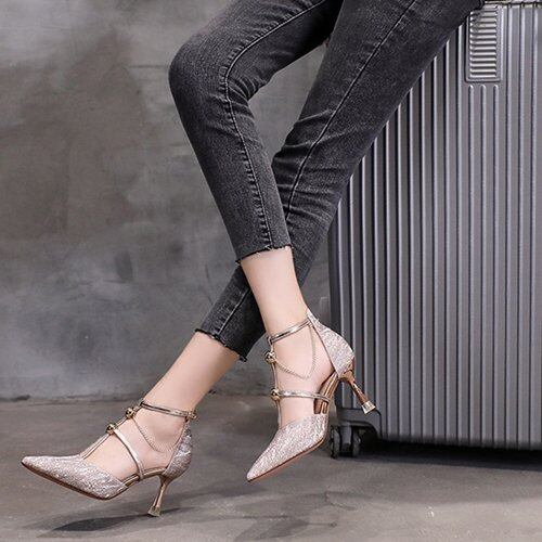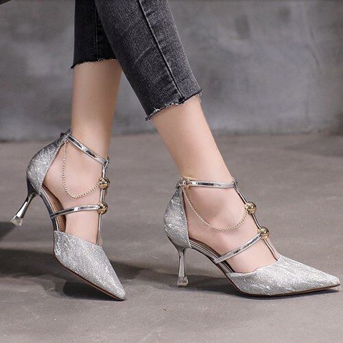 結婚式 パンプス ヒールパンプス ポインテッドトゥ アンクル ストラップ チェーン ベルト 結婚式用 結婚式パンプス 二次会 大きいサイズ 結婚式 パンプス ヒールパンプス ポインテッドトゥ アンクル