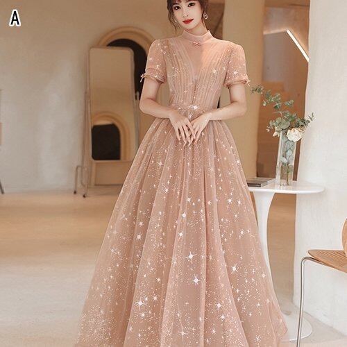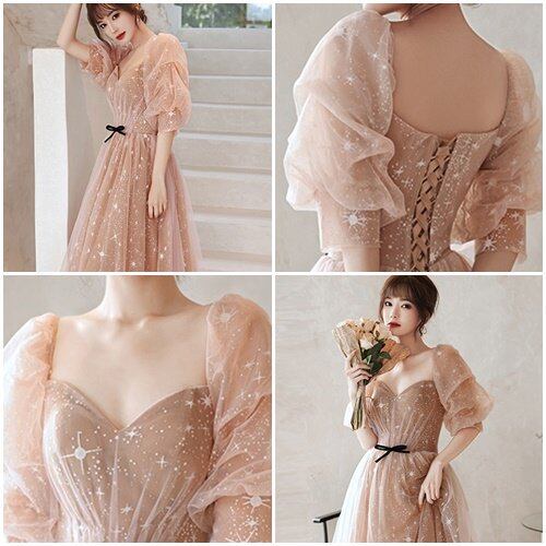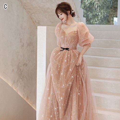 演奏会ドレス 発表会 結婚式 二次会 お呼ばれ パーティー ロング ドレス シフォン 半袖 パフスリーブ フリル バックシャン 大きいサイズ 演奏会ドレス 発表会 結婚式 二次会 お呼ばれ パーティー