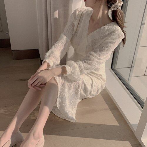 パーティードレス 結婚式 二次会 お呼ばれ パーティー ミモレ丈 ワンピース マーメイド Vネック エレガント パーティードレス 結婚式 二次会 お呼ばれ パーティー ミモレ丈 ワンピース マーメイド