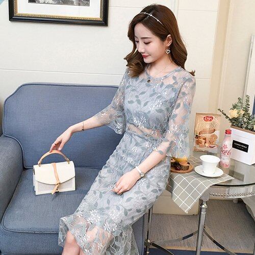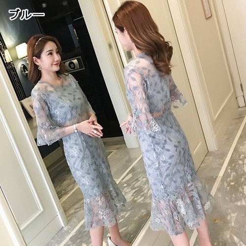 パーティードレス 結婚式 二次会 お呼ばれ パーティー ワンピース レース 七分袖 シースルー フリル エレガント 大きいサイズ パーティードレス 結婚式 二次会 お呼ばれ パーティー ワンピース