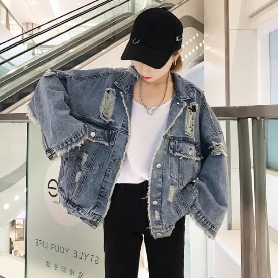 デニムジャケット レディース アウター 羽織 ジャケット デニム Gジャン ダメージ加工 コットン 長袖ジャケット カジュアル お出かけ おしゃれ ゆったり ルーズシルエット フロントボタン 襟あり