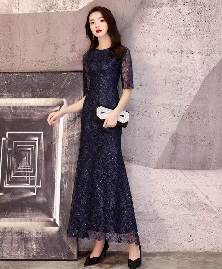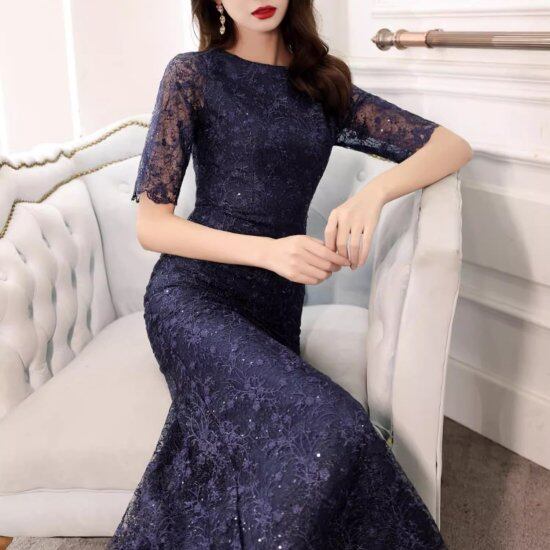 結婚式ドレス レディース 総レース ロングドレス 半袖 ラウンドネック マキシ丈 透け感 シアー シースルー スパンコール 演奏会 二次会 披露宴 謝恩会 パーティー イブニングドレス エレガント