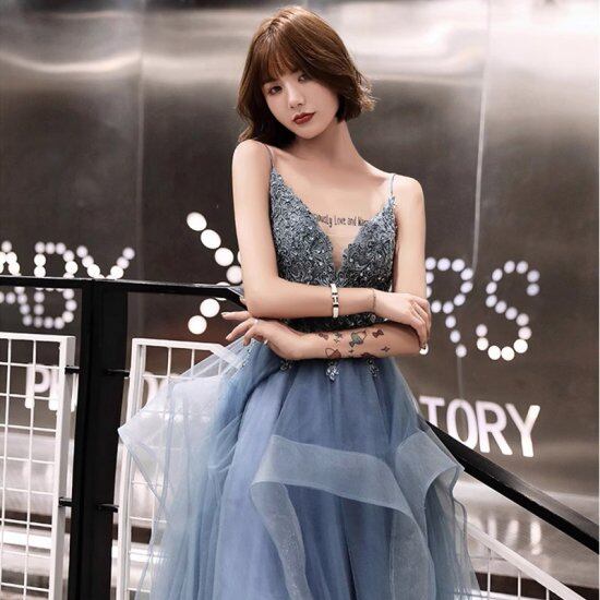 ウェディングドレス レディース チュチュ Vネック ノースリーブ キャミソール 背中あき ボリューム レース 異素材MIX フレア シック パーティードレス イブニングドレス 華やか エレガント