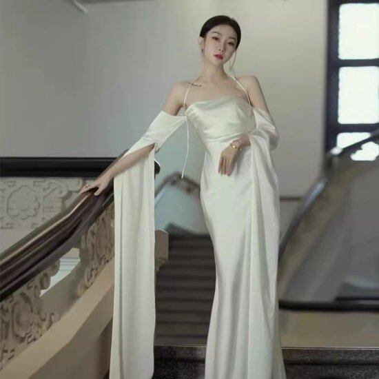 ウェディングドレス レディース オフショルダー ホルターネック ハンギングネック ベアトップ タイト スリム レトロ クラシカル 結婚式 パーティードレス イブニングドレス セクシー エレガント