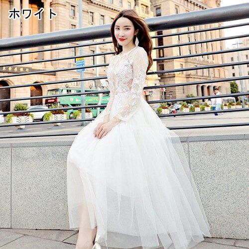 パーティードレス 結婚式 お呼ばれ パーティー チュール ワンピース レース シースルー 長袖 大きいサイズ パーティードレス 結婚式 お呼ばれ パーティー チュール ワンピース レース シースルー