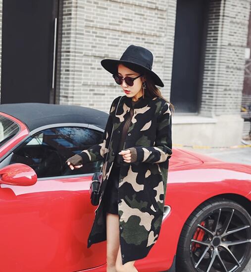ミドル丈カーディガン レディース アウター カーデ 羽織 長袖カーディガン ミドル丈 迷彩柄 カモフラ柄 ニットカーディガン フロントボタン ファッション カジュアル お出かけ おしゃれ 女性 秋冬