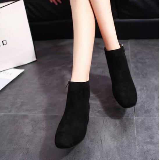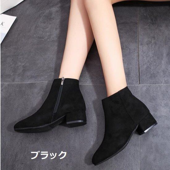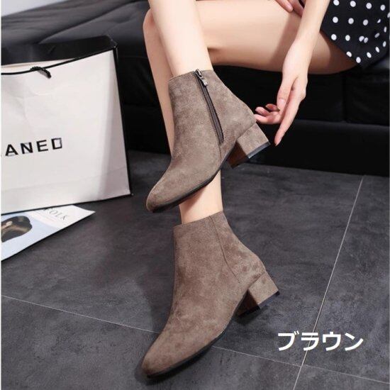ショートブーツ レディース ブーティ スエード アンクルブーツ ローヒール 4cmヒール 太ヒール チャンキーヒール サイドファスナー シンプル きれいめ 上品 カジュアル ブーツ 靴 おしゃれ