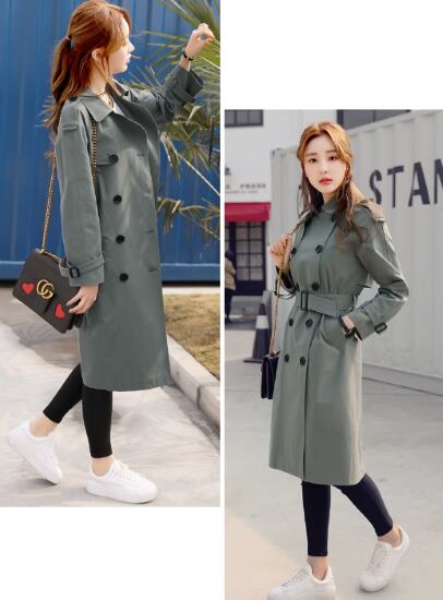 トレンチコート レディース アウター 羽織 ロングコート ウエストベルト ボタン ダブルブレスト シンプル 無地 定番 ベーシック 袖口ベルト 襟あり スーツ襟 きれいめ エレガント カジュアル 女性