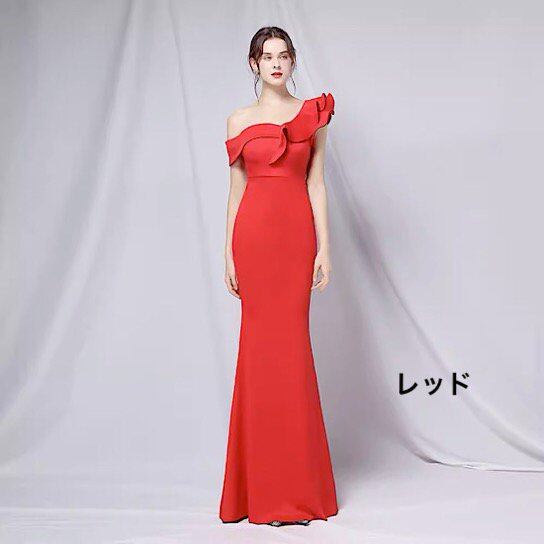 結婚式ドレス ワンショルダー スリムフィット無地 シンプル マキシ丈 ハイウエスト 発表会 演奏会 レディース 結婚式 ステージ衣装 エレガント ウエディングドレス カラードレス イブニングドレス