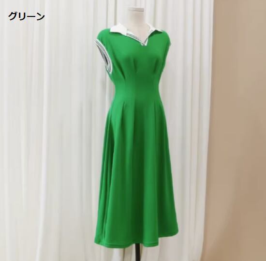 ミモレ丈ワンピース レディース ワンピース 膝下ワンピース フレンチスリーブ ハイウエスト ポロ襟 襟あり プルオーバー カジュアル お出かけ おしゃれ タック ファッション 無地 ラインデザイン