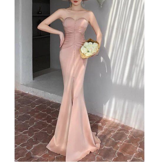 結婚式ドレス レディース マーメイド ベアトップ チューブトップ ノースリーブ スリム タイト スリット ロングドレスマキシ丈 演奏会 二次会 パーティー イブニングドレス エレガント おしゃれ