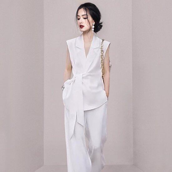 セットアップ レディース パンツスーツ ワイドパンツ ロング丈 ノースリーブ テーラードカラー カシュクール ツーピース パンツドレス おでかけ お呼ばれ オフィス パーティー エレガント おしゃれ