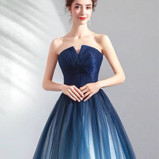 ウェディングドレス レディース ノースリーブ グラデーション ベアトップ チューブトップ プリンセス ロングドレス マキシ丈 青 演奏会 二次会 披露宴 パーティー イブニングドレス エレガント