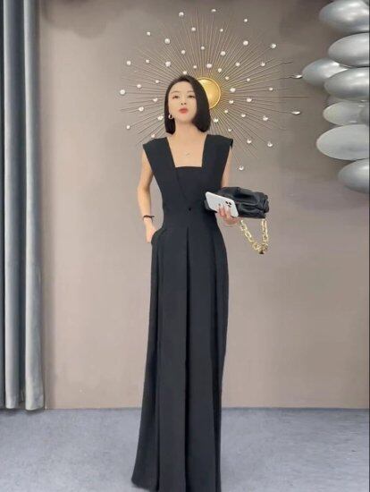 パンツドレス レディース 結婚式ドレス ノースリーブ ジャンプスーツ スクエアネック ハイウエスト ワイドパンツ ロング丈 マキシ丈 演奏会 二次会 謝恩会 パーティードレス おしゃれ エレガント