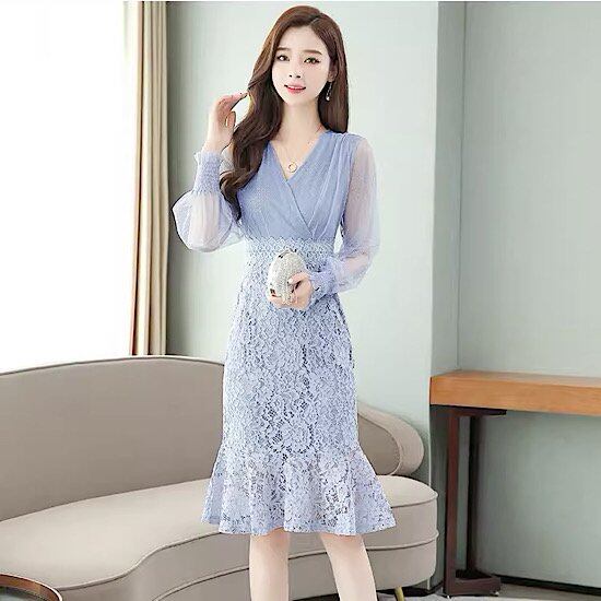結婚式ドレス レース シースルー Vネック 刺繍 ミモレ丈 ハイウエスト 発表会 演奏会 レディース 結婚式 ステージ衣装 エレガント ウエディングドレス カラードレス イブニングドレス