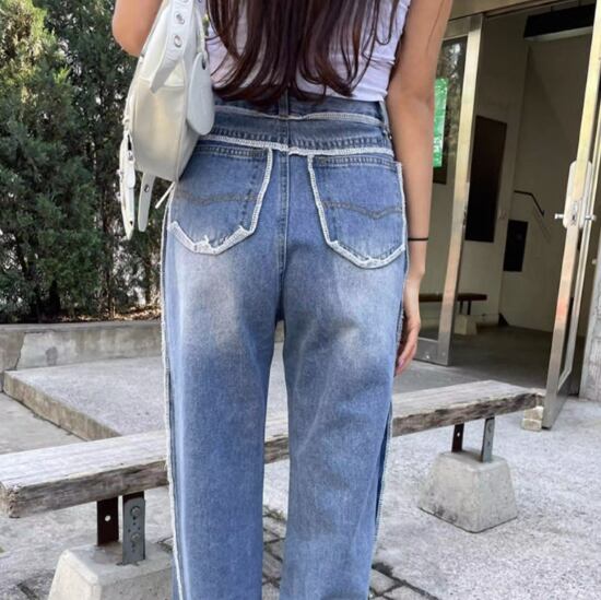 デニムパンツ レディース ボトムス パンツ ロングパンツ ジーパン 長ズボン カジュアルパンツ ワイドパンツ ハイウエスト ジッパー お出かけ おしゃれ シンプル 無地 ファッション ステッチ 女性