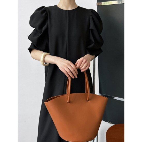 ワンピース ロングスカート ボリュームスリーブ パススリーブ 半袖 お出かけ 大きいサイズ カジュアル ゆったり Uネック マキシ丈 スリット 体型カバー 抜け感 きれい 上品 2WAY フォーマル
