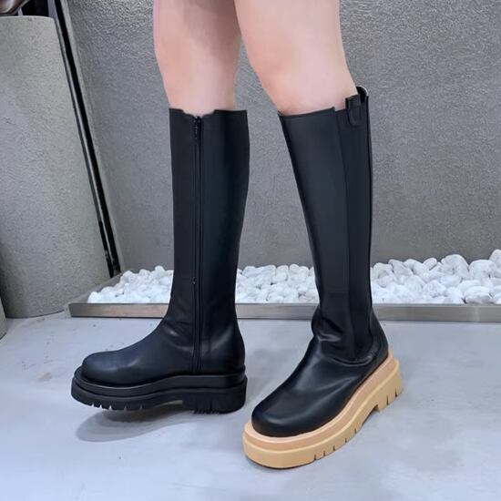 ロングブーツ レディース ブーツ 靴 シューズ 厚底ブーツ サイドジッパー ラウンドトゥ シンプル 無地 カジュアル お出かけ おしゃれ 履きやすい 歩きやすい 疲れにくい ローヒール 女性 PU