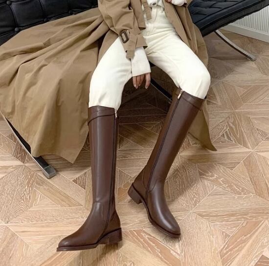 ロングブーツ レディース ブーツ 靴 シューズ サイドジッパー ベルトデザイン シンプル 無地 履きやすい 歩きやすい 疲れにくい 美脚 脚長 太ヒール チャンキーヒール カジュアル きれいめ 女性
