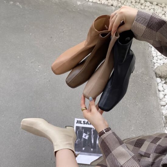 ショートブーツ レディース ブーツ 靴 シューズ 太ヒール チャンキーヒール スクエアトゥ バックジッパー シンプル 無地 カジュアル お出かけ おしゃれ きれいめ エレガント ファッションブーツ