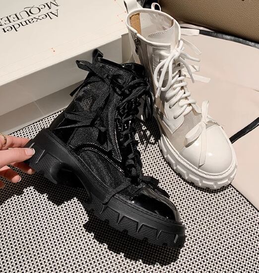 ショートブーツ レディース ブーツ 靴 シューズ 厚底ブーツ シースルー メッシュブーツ りぼん レースアップブーツ サイドジッパー ラウンドトゥ カジュアル お出かけ おしゃれ 可愛い 個性的