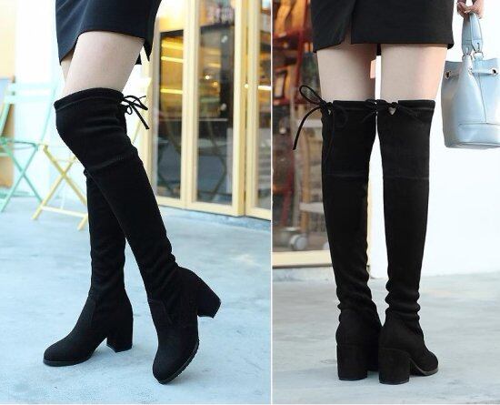 ニーハイブーツ レディース スエードブーツ ラウンドトゥ ロング丈 ひざ上 ベルベット 太ヒール チャンキーヒール ハイヒール 7.4cmヒール リボン おでかけ きれいめ セクシー おしゃれ 靴