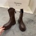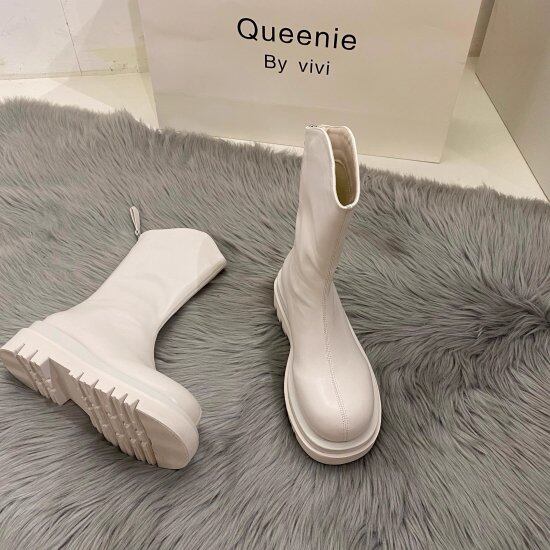 ハーフブーツ レディース ショートブーツ ラウンドトゥ ミドルヒール 5cmヒール 厚底 フェイクレザー エコレザー バックファスナー フラット カジュアル ストリート ガーリー 靴 おしゃれ
