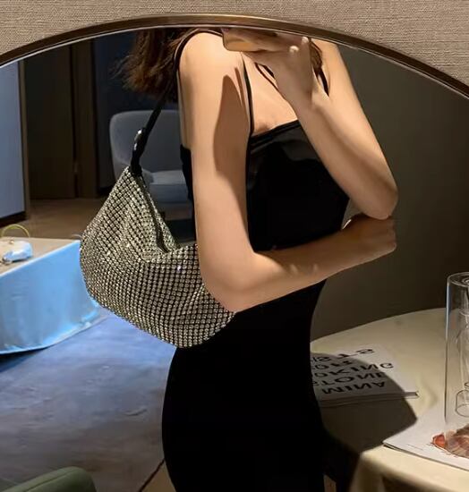 ショルダーバッグ レディース バッグ 鞄 かばん 肩掛けバッグ ラインストーン クリスタル きらきら きれいめ エレガント お呼ばれ パーティー カジュアル お出かけ おしゃれ ジッパー コンパクト