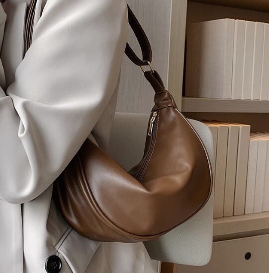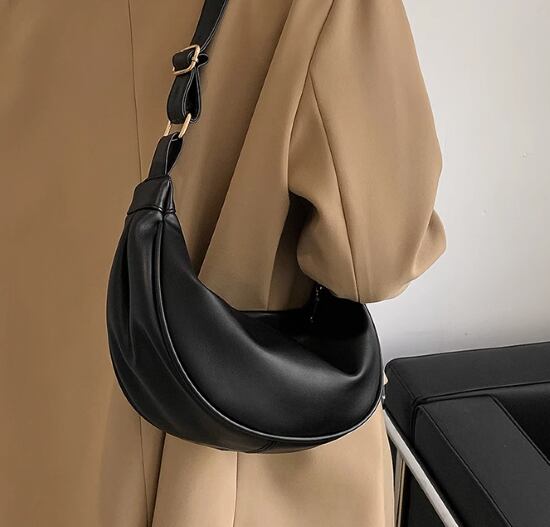 ショルダーバッグ レディース バッグ 鞄 かばん メッセンジャーバッグ クロスボディバッグ 斜め掛けバッグ 肩掛けバッグ 三日月型 シンプル 無地 PU ジッパー カジュアル お出かけ おしゃれ 女性