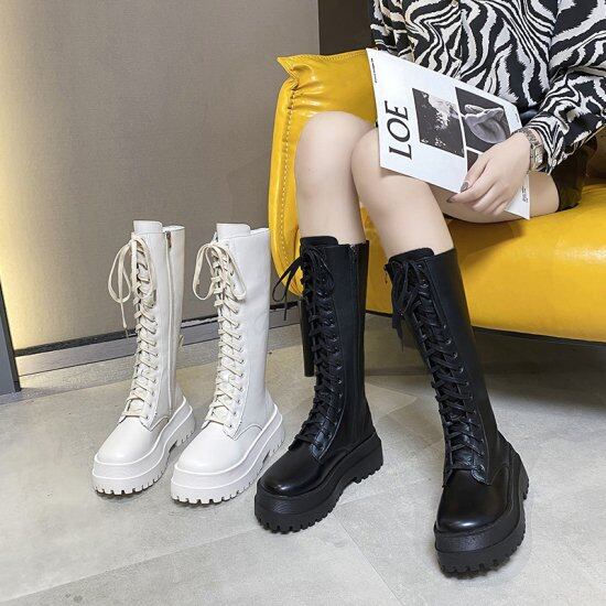 ブーツ 厚底 大きいサイズ レディース ミドル丈 ミディアムブーツ レースアップブーツ 編み上げブーツ 美脚 ファスナー 通勤 デート 女子会 お出かけ 休日 10代 20代 30代 40代 秋冬