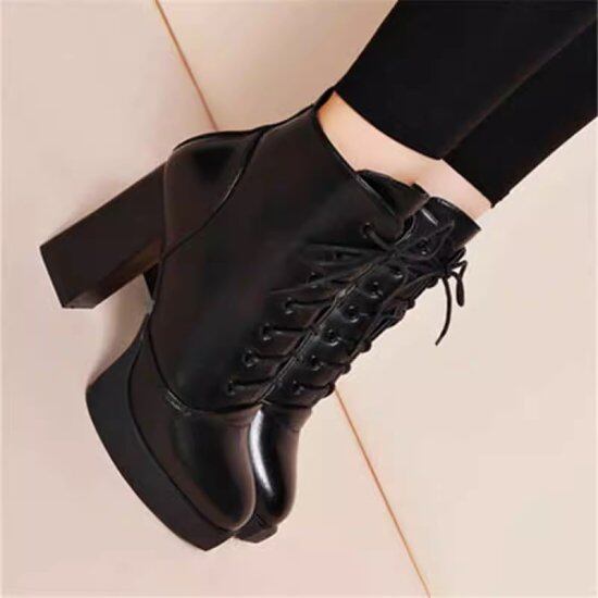 ショートブーツ レディース レースアップ 編み上げ アンクルブーツ ショート丈 ハイヒール 選べるヒール 7cmヒール 10cmヒール 太ヒール 厚底 スタイルアップ 脚長 カジュアル おしゃれ