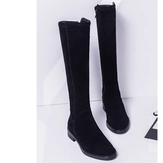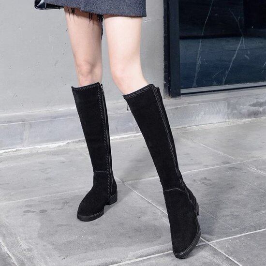 ロングブーツ レディース スエードブーツ ロング丈 ステッチ ヌバック レザー ラウンドトゥ ローヒール 3cmヒール フラット スエード きれいめ カジュアル おでかけ オフィス 靴 おしゃれ