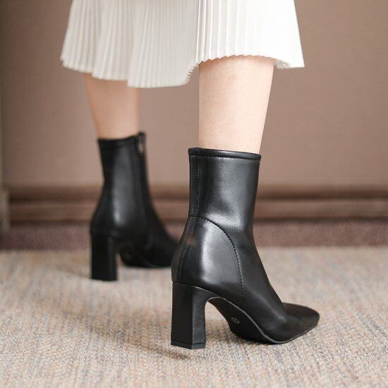 ショートブーツ レディース 大きいサイズ スクエアヒール 履きやすい 履き口 ゆったり ショート丈 無地 シンプル 2色 通勤 デート 女子会 お出かけ 休日 10代 20代 30代 40代 春秋