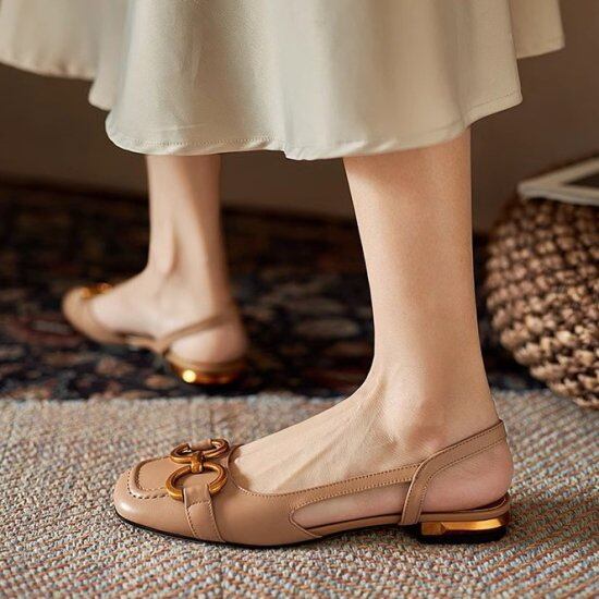 パンプス レディース バックストラップ スクエアトゥ サンダル ミュール ローヒール 太ヒール 2.5cmヒール フェイクレザー エコレザー レトロ クラシカル きれいめ カジュアル 靴 おしゃれ