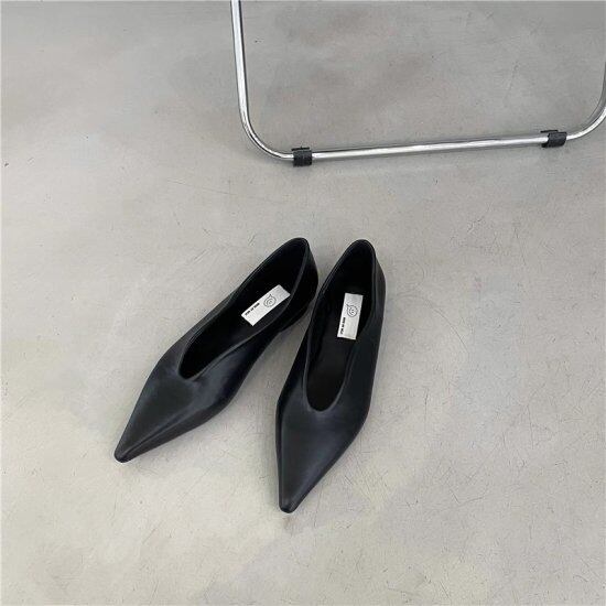 パンプス レディース フラットシューズ ポインテッドトゥ フェイクレザー エコレザー ローヒール 2cmヒール ぺたんこ シンプル きれいめ カジュアル レトロ 脚長 美脚 オフィス 靴 おしゃれ