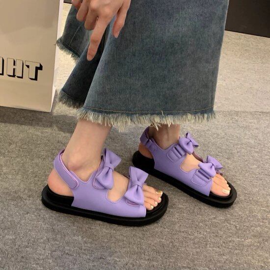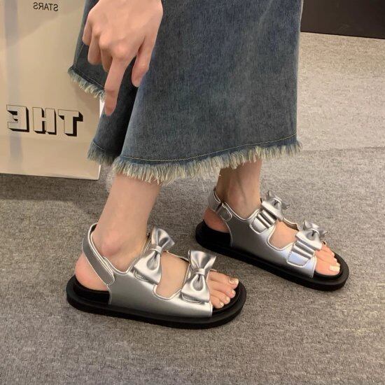 サンダル レディース リボン ストラップサンダル スポーツサンダル ダブルストラップ ウェッジソール 厚底 ローヒール 3.5cmヒール かわいい ガーリー カジュアル リゾート プール おしゃれ
