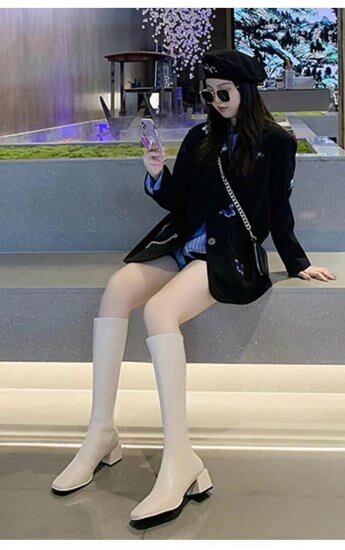 ロングブーツ レディース 大きいサイズ 太ヒール ロング丈 ファスナー 履きやすい 履き口 ゆったり 無地 シンプル 歩きやすい 通勤 デート 女子会 お出かけ 10代 20代 30代 40代 春秋冬