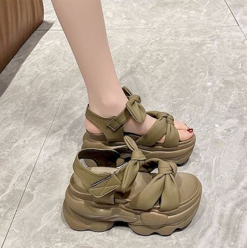 サンダル レディース ウェッジソール 厚底 オフホワイト ブラウン 厚底 サンダル 美脚 ウェッジソール 歩きやすい サンダル リボン オープントゥ かわいい 美脚 痛くない 疲れにくい