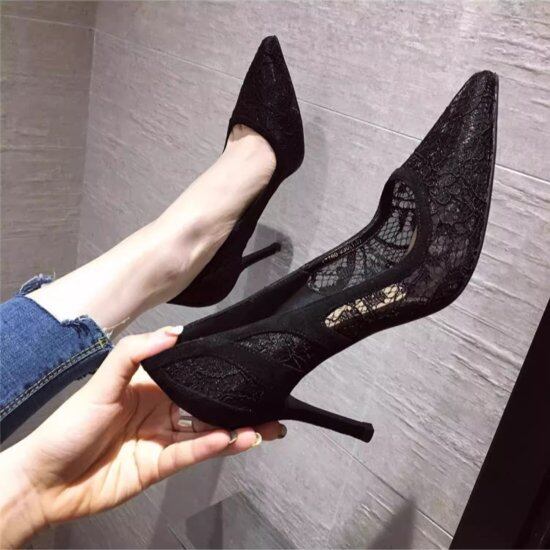 パンプス レディース レース ポインテッドトゥ レースパンプス 総レース ハイヒール 6cmヒール 異素材MIX きれいめ 上品 エレガント オケージョン フォーマル パーティー 靴 おしゃれ