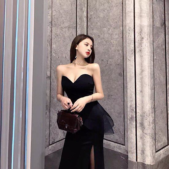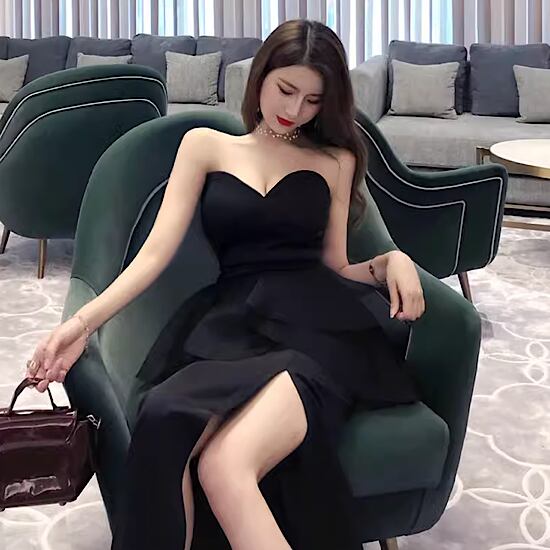 結婚式ドレス ハートカット スリット ロング丈 スリム フレンチ チューブトップ 無地 シンプル 発表会 演奏会 レディース 結婚式 ステージ衣装 エレガント ウエディングドレス イブニングドレス