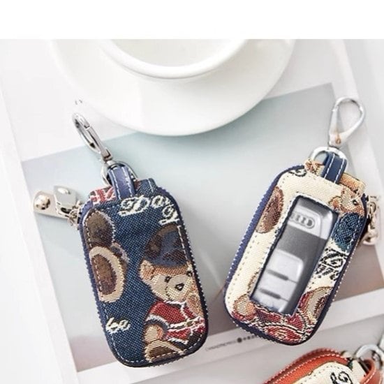 キーケース レディース テディベア ダブルジッパー スマートキーケース 英国風 クマ くま 大容量 キーバッグ コンパクト かわいい ガーリー カジュアル ダブルファスナー スマートキー おしゃれ