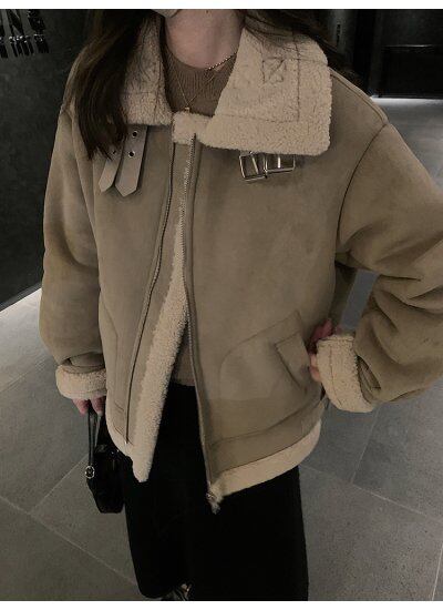 ジャケット レザー 大きいサイズ レディース レギュラー丈 ミディアム丈 毛皮 もこもこ モコモコ 長袖 ファスナー ポケット 2色 無地 シンプル 通勤 デート 女子会 お出かけ 休日 20代 秋冬