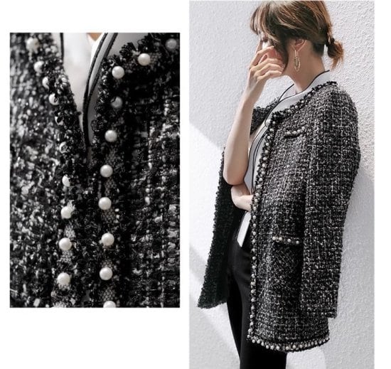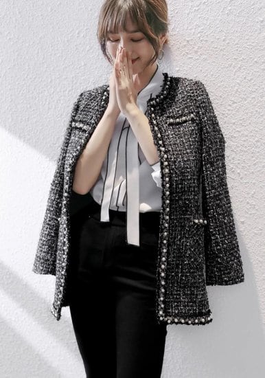 ツイードジャケット レディース ジャケットコート ラウンドネック 長袖 ミックスツイード パール ロング丈ジャケット きれいめ 上品 カジュアル オケージョン フォーマル パーティー おしゃれ