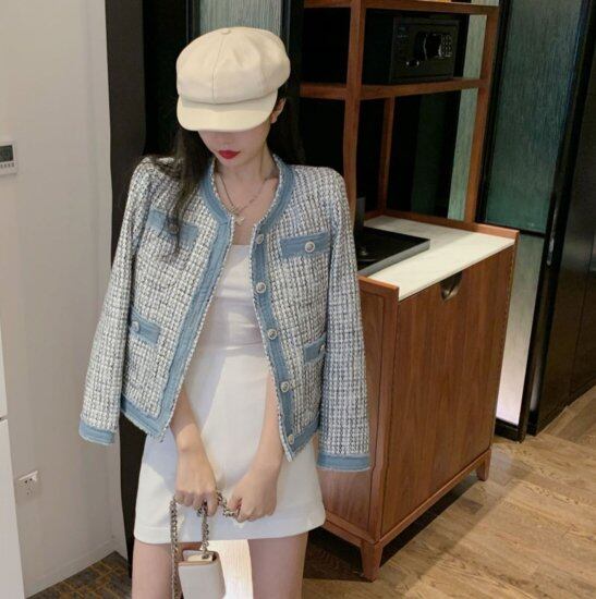 ジャケット チェック柄 大きいサイズ レディース レギュラー丈 ミディアム丈 長袖 ボタン ラウンドネック ポケット 無地 シンプル 通勤 デート 女子会 お出かけ 休日 韓国 イベント 20代 春秋