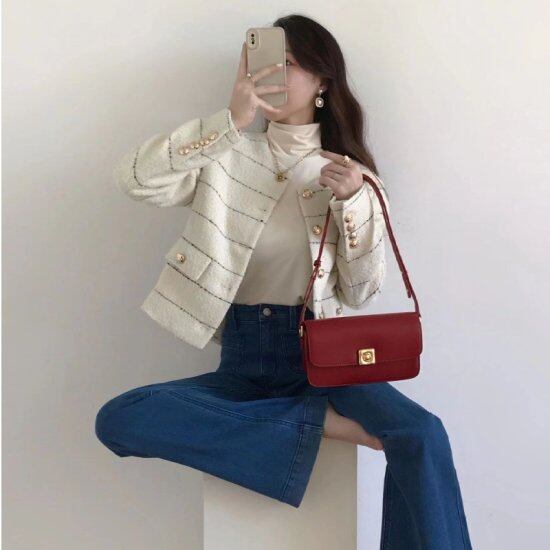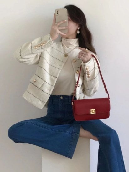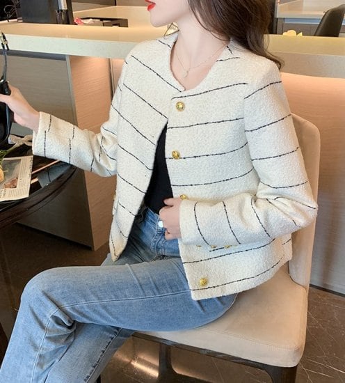 ジャケット ストライプ柄 大きいサイズ レディース レギュラー丈 ミディアム丈 長袖 ラウンドネック ボタン ポケット 無地 シンプル 通勤 デート 女子会 お出かけ 休日 韓国 イベント 20代 秋