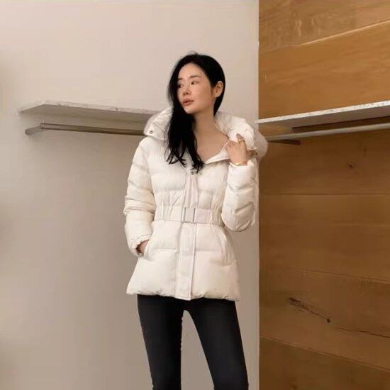 ダウンジャケット レディース 中綿ジャケット フード付き ファーフード ベルト付き ショート丈 ミディアム丈 スリム ウエストベルト あたたか きれいめ カジュアル アウトドア オフィス おしゃれ