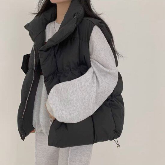 ダウンベスト レディース 中綿ベスト スタンドカラー ノースリーブ ファスナー ジッパー ボリューム ドロスト ゆったり ショート丈 かわいい カジュアル ユニセックス あたたか 防寒 おしゃれ