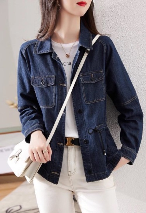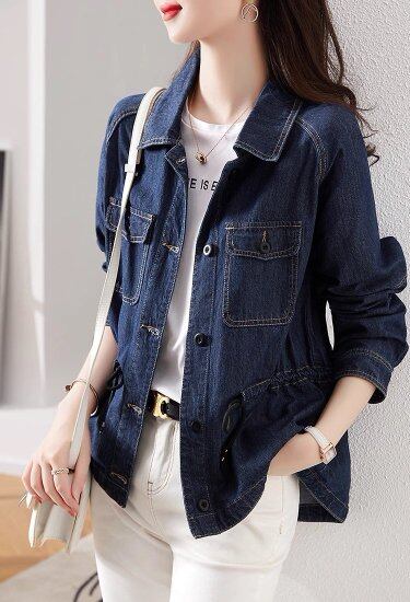 デニムジャケット レディース ペプラム デニムシャツ 長袖 ドローストリング ペプラムジャケット シングル スリム ポロ襟 羽織り きれいめ カジュアル 大人カジュアル オフィス デニム おしゃれ